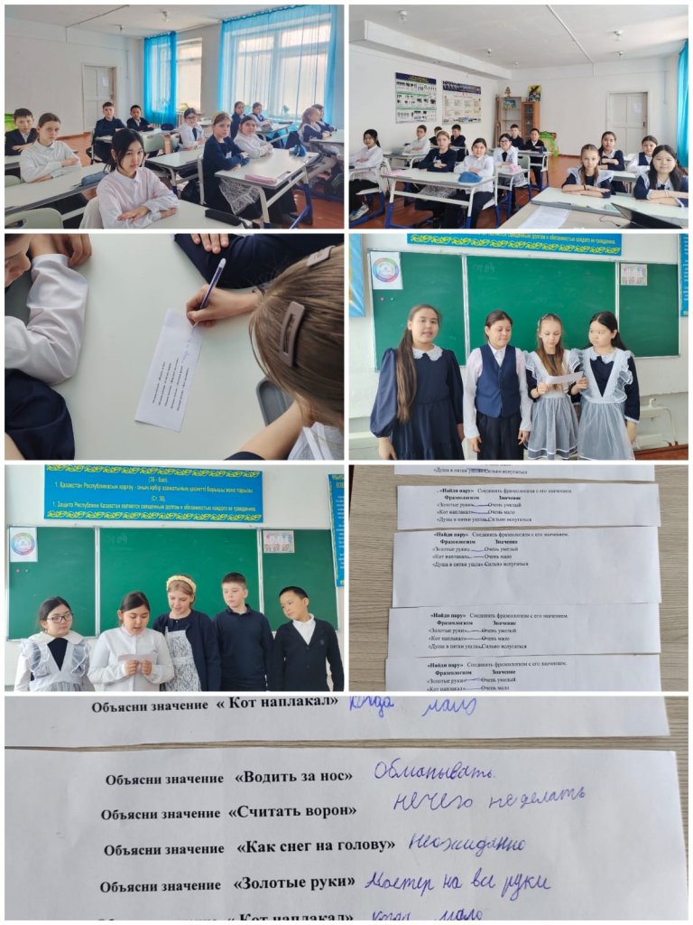 Бүгін 2 наурызда орыс тілі мен әдебиеті онкүндігінің жоспарына сәйкес №6 ЖББМ 5 "А" сыныпта "Фразеологизмдердің үздік білгірі" тақырыбы бойынша сыныптан тыс іс-шара өтті.