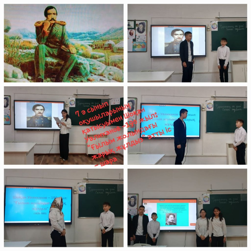 Бүгін мектебімізде қазақ тілі мен әдебиеті апталығы аясында ұлы ғалым, саяхатшы, этнограф, ағартушы Шоқан Шыңғысұлы Уәлихановтың 190 жылдығына арналған «Ғылым жолындағы жарық жұлдыз» атты танымдық іс-шара өтті.