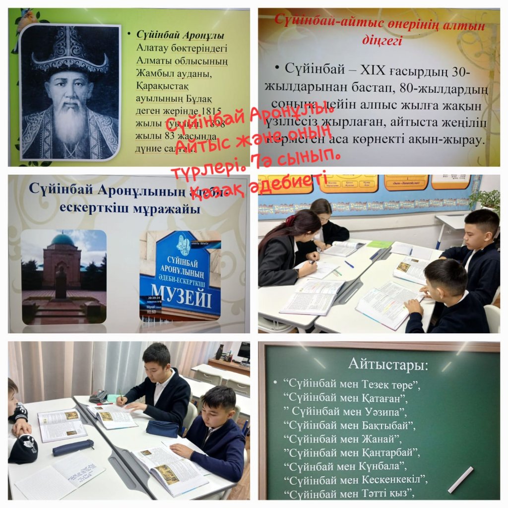 Қазақ тілі мен әдебиеті пәнінің апталығы аясында №6 жалпы орта білім беретін мектебінде 7-сынып оқушыларымен «Сүйінбай Аронұлы. Айтыс және оның түрлері» тақырыбында ашық сабақ өтті.