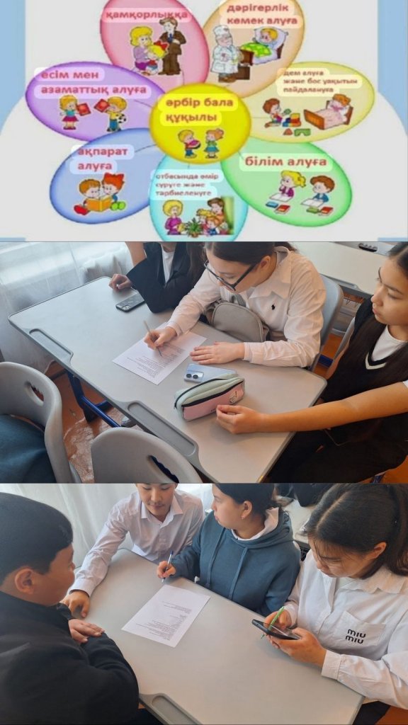 3 қараша күні 8–9 сынып оқушыларымен «Заң және менің құқығым» тақырыбында сынып сағаты өткізілді.