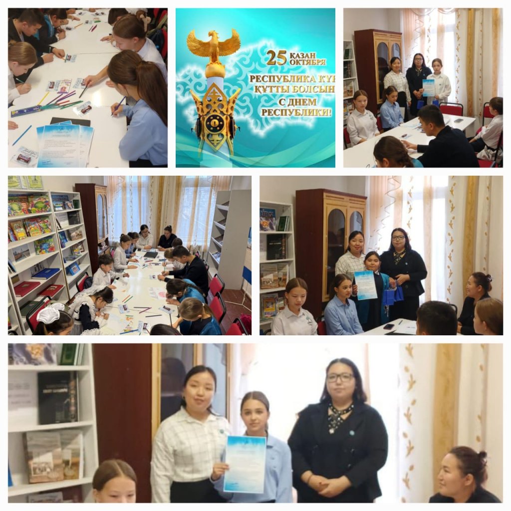 24 қазанда №6 мектептің кітапханасында Республика күніне арналған «Менің Отаным – Қазақстан» атты танымдық іс-шара өтті. Іс-шараның басты мақсаты – оқушылардың отанға деген сүйіспеншілігін арттыру, патриоттық тәрбие беру және шығармашылық қабілеттерін дамыту.